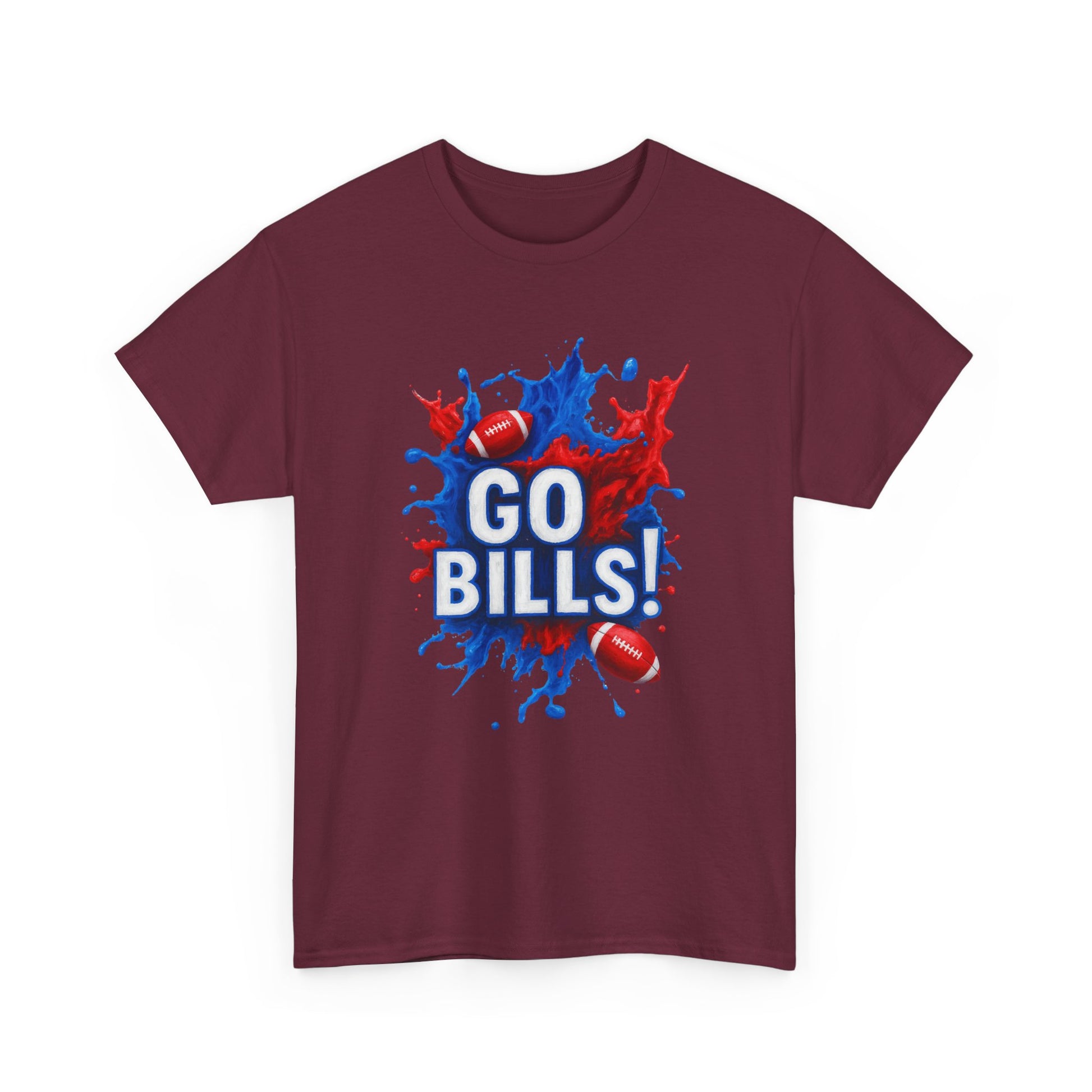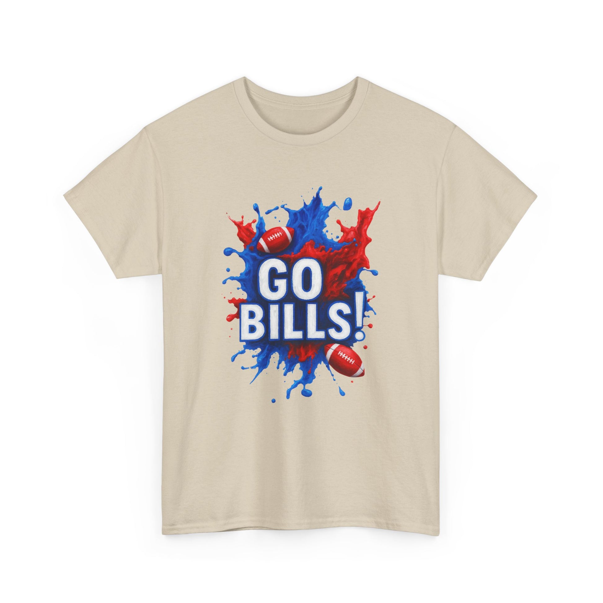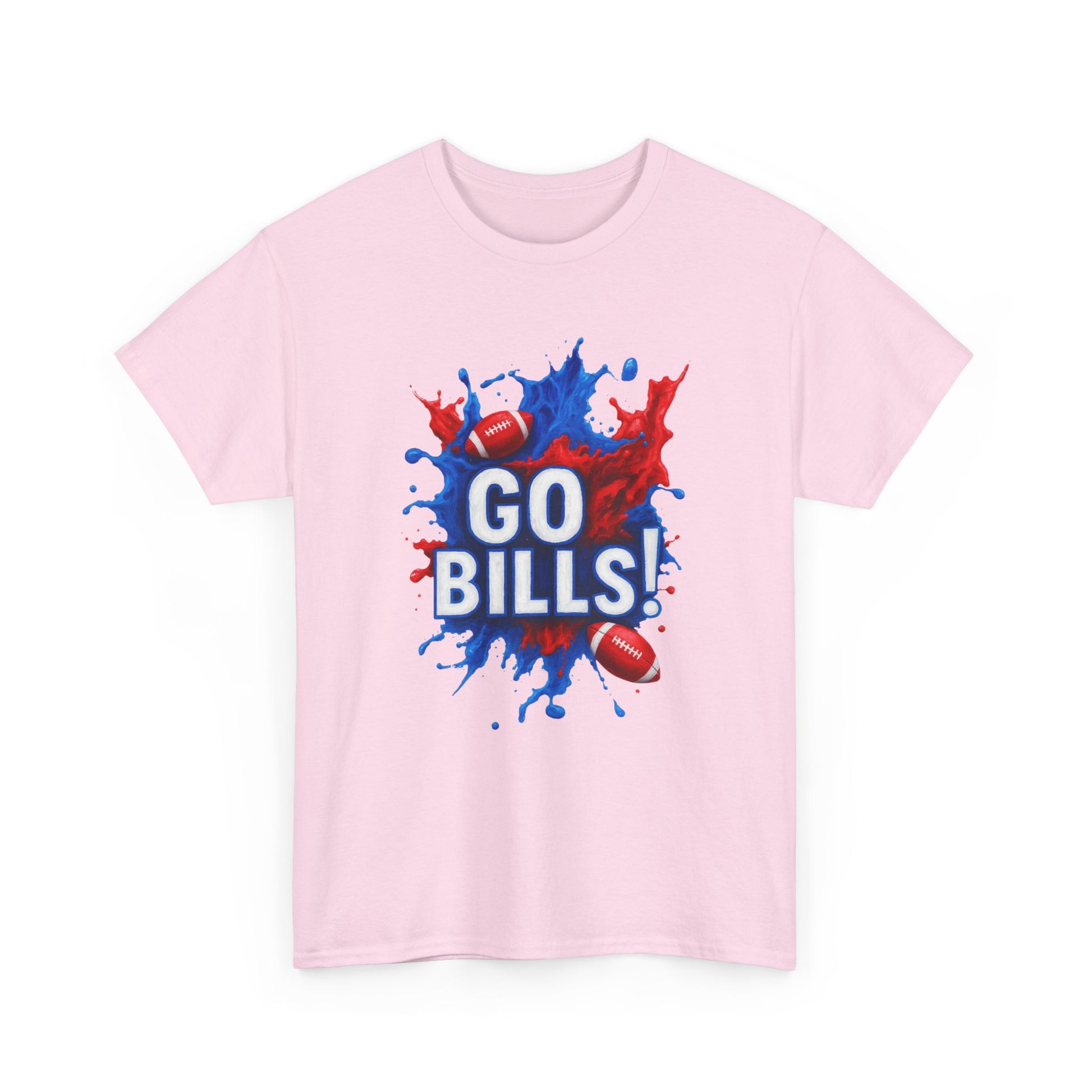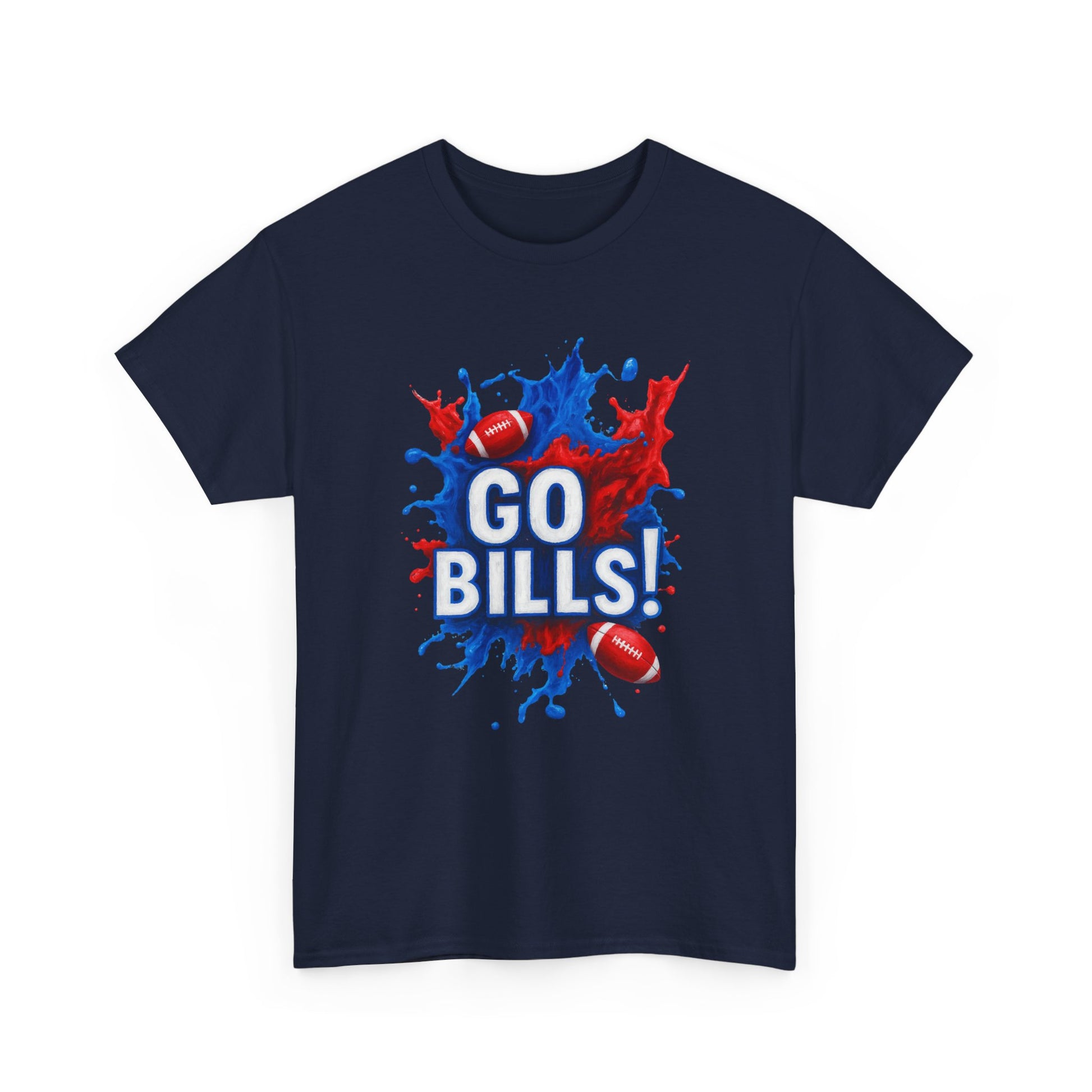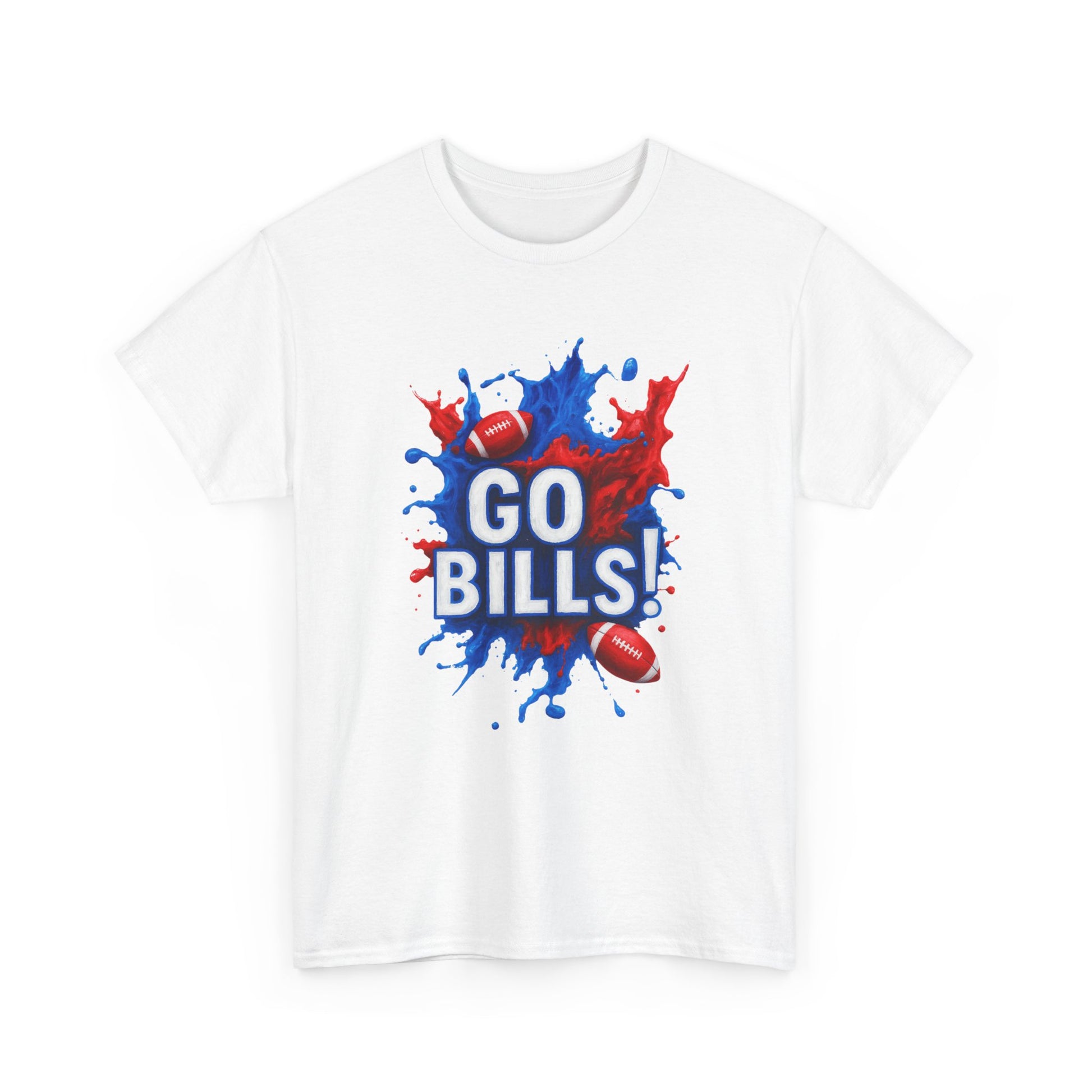 Go Bills -Cheerful Sports Tee - Go Bills! Unisex Heavy Cotton T-Shirt, Game Day Apparel, Football Fan Shirt, Spirit Wear, Gift for Sports Lovers