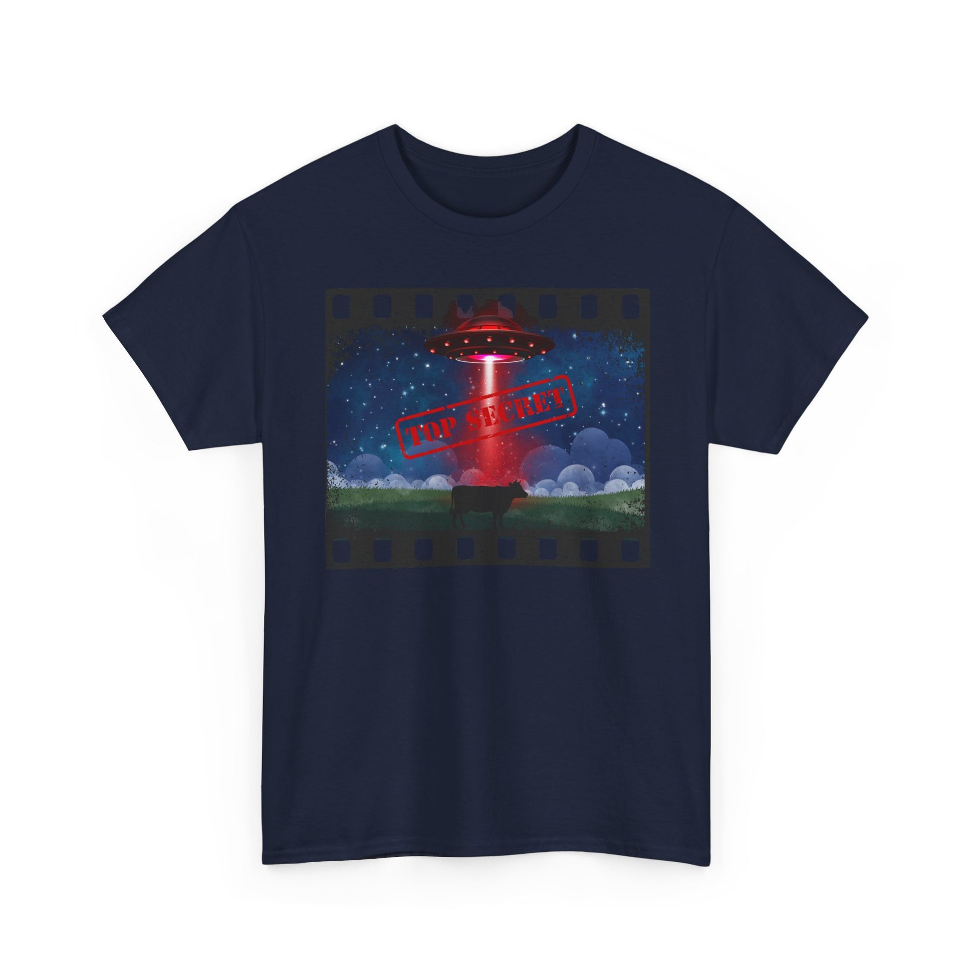 COW & UFO Tee | Unisex Heavy Cotton T-Shirt, Alien Design, Sci-Fi Merchandise, Casual Wear, Gift for Extraterrestrial Fans