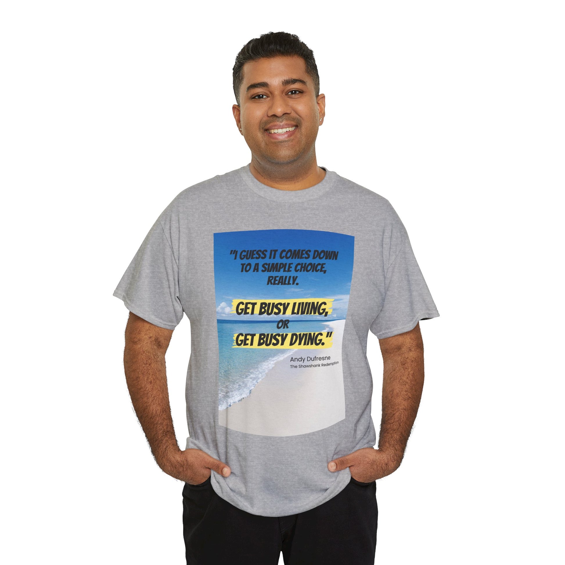 Get Busy Living -Inspirational Quote Tee, Motivational Shirt, Casual Wear, Gift for Friends, Coastal Vibe, Summer Style, Beach Look