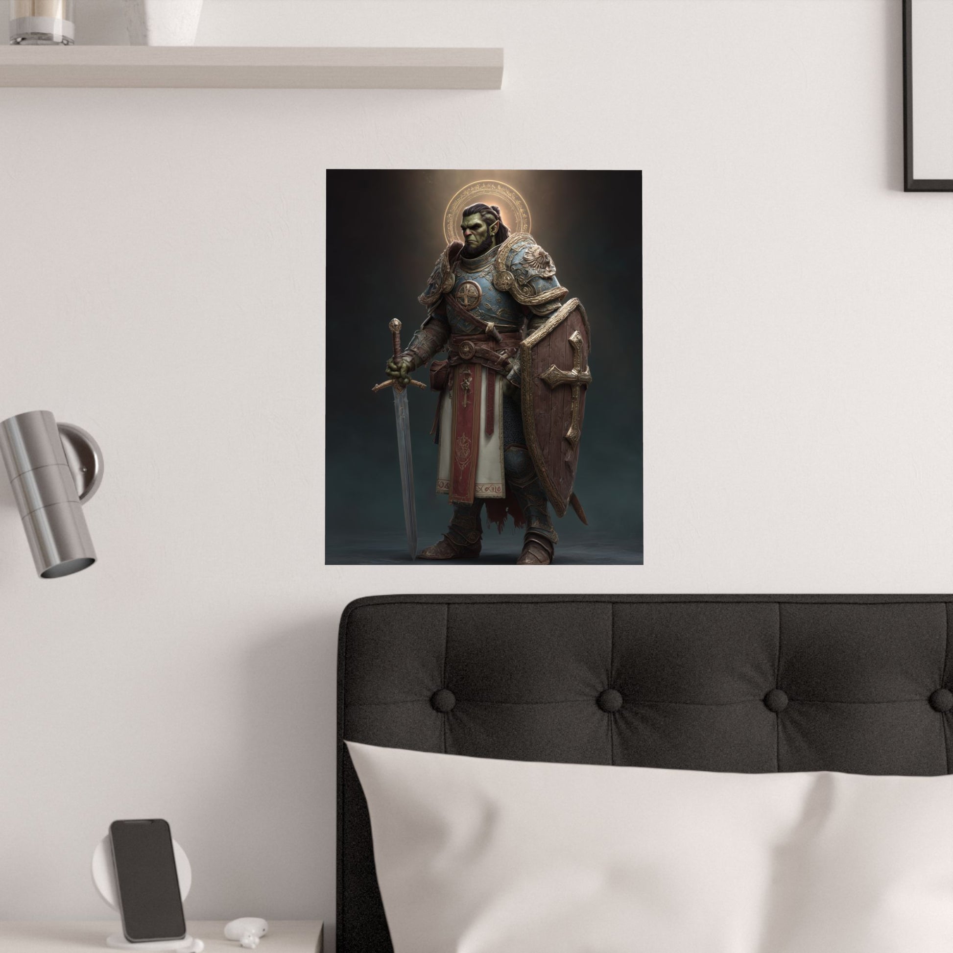 Half Orc Paladin - Satin Paper Poster — Fantasy Knight Wall Art