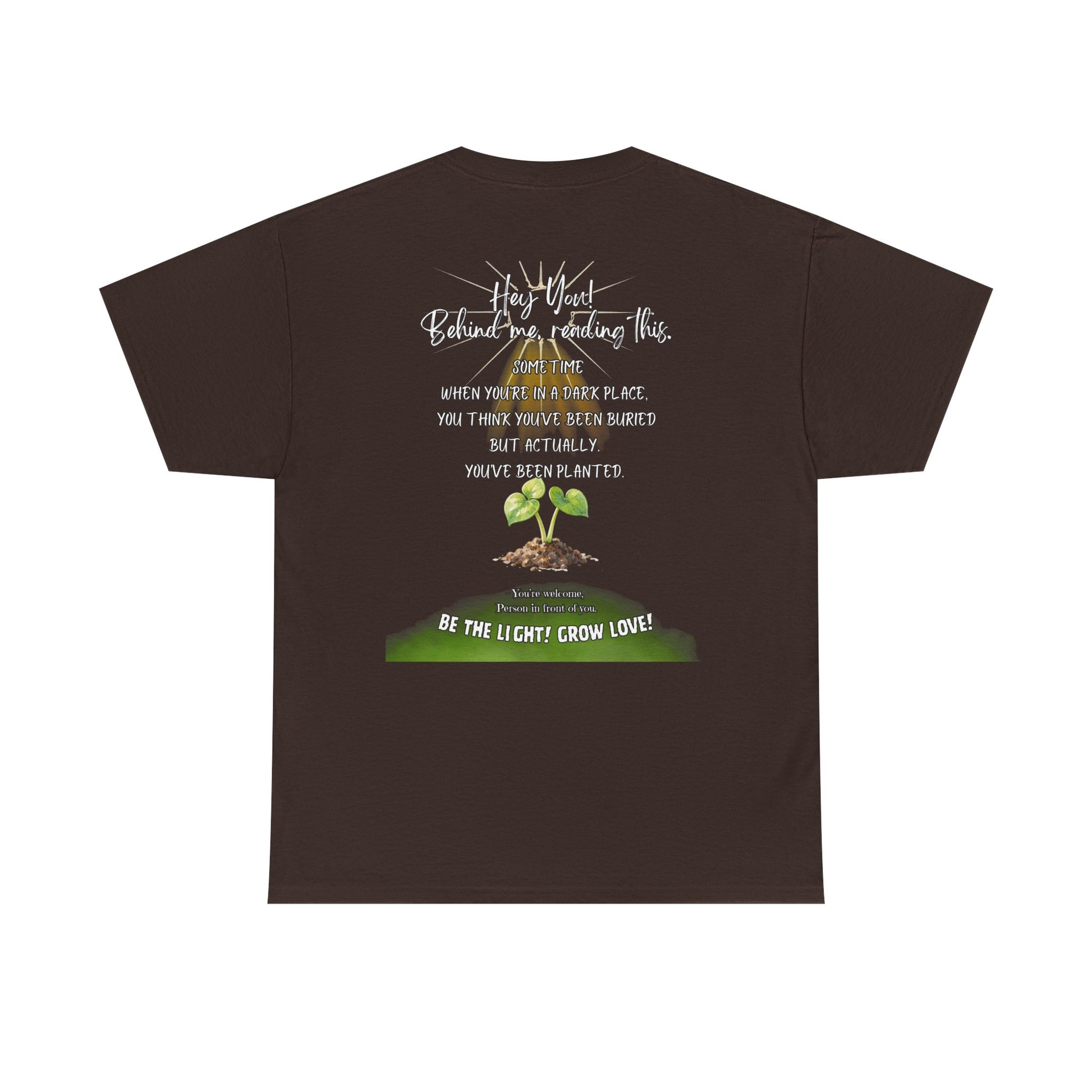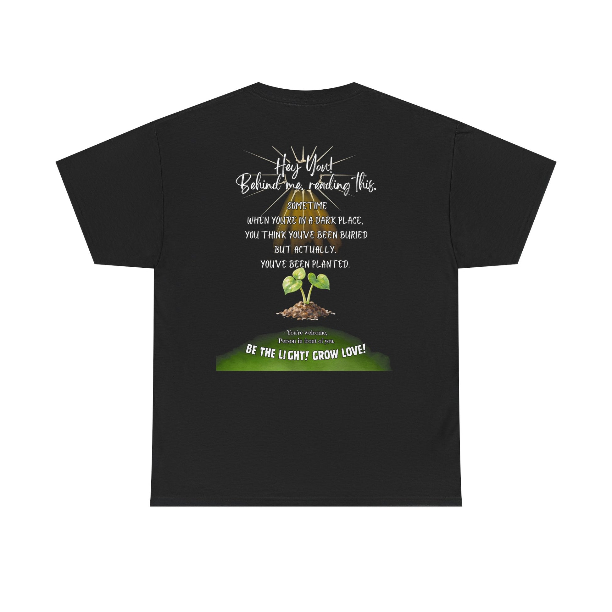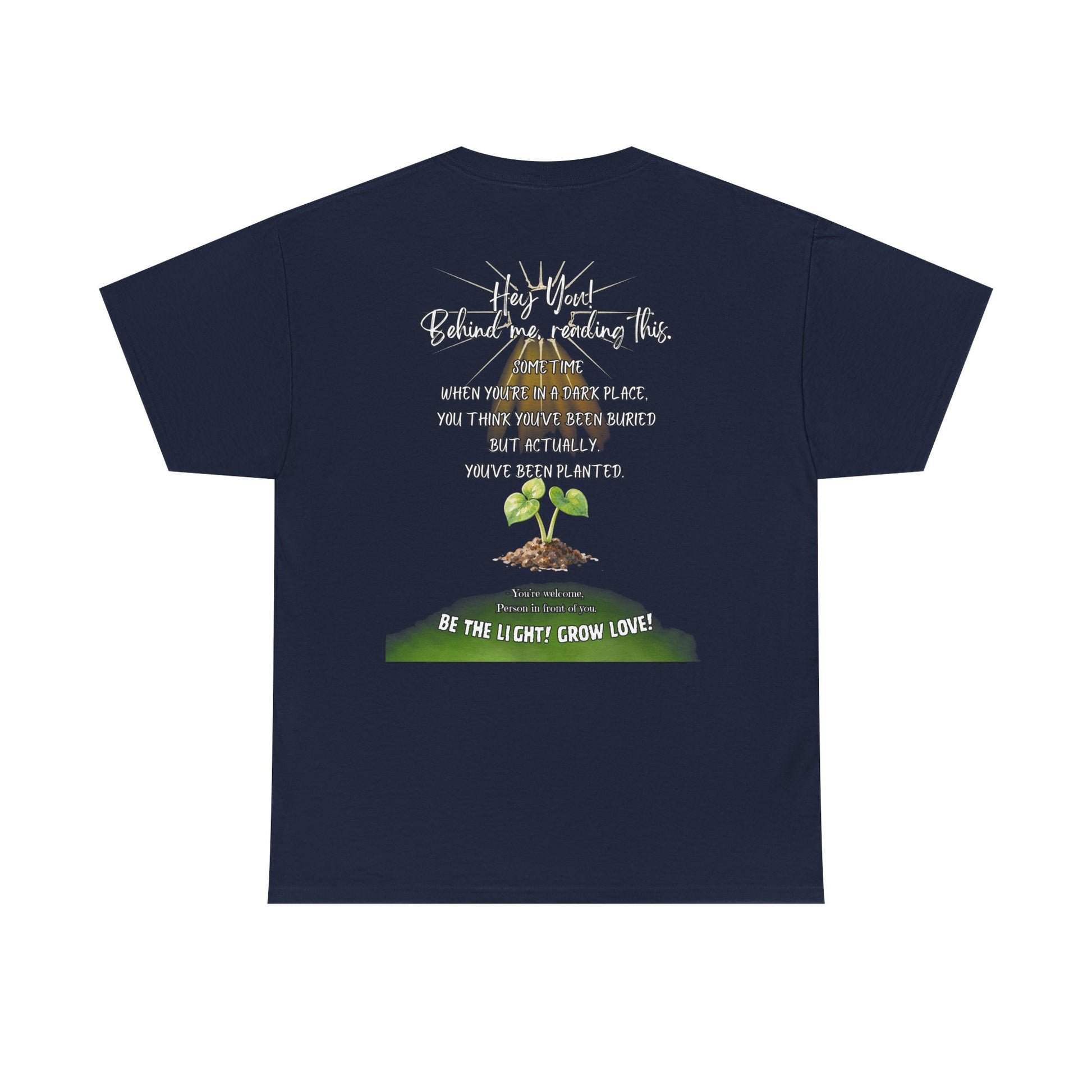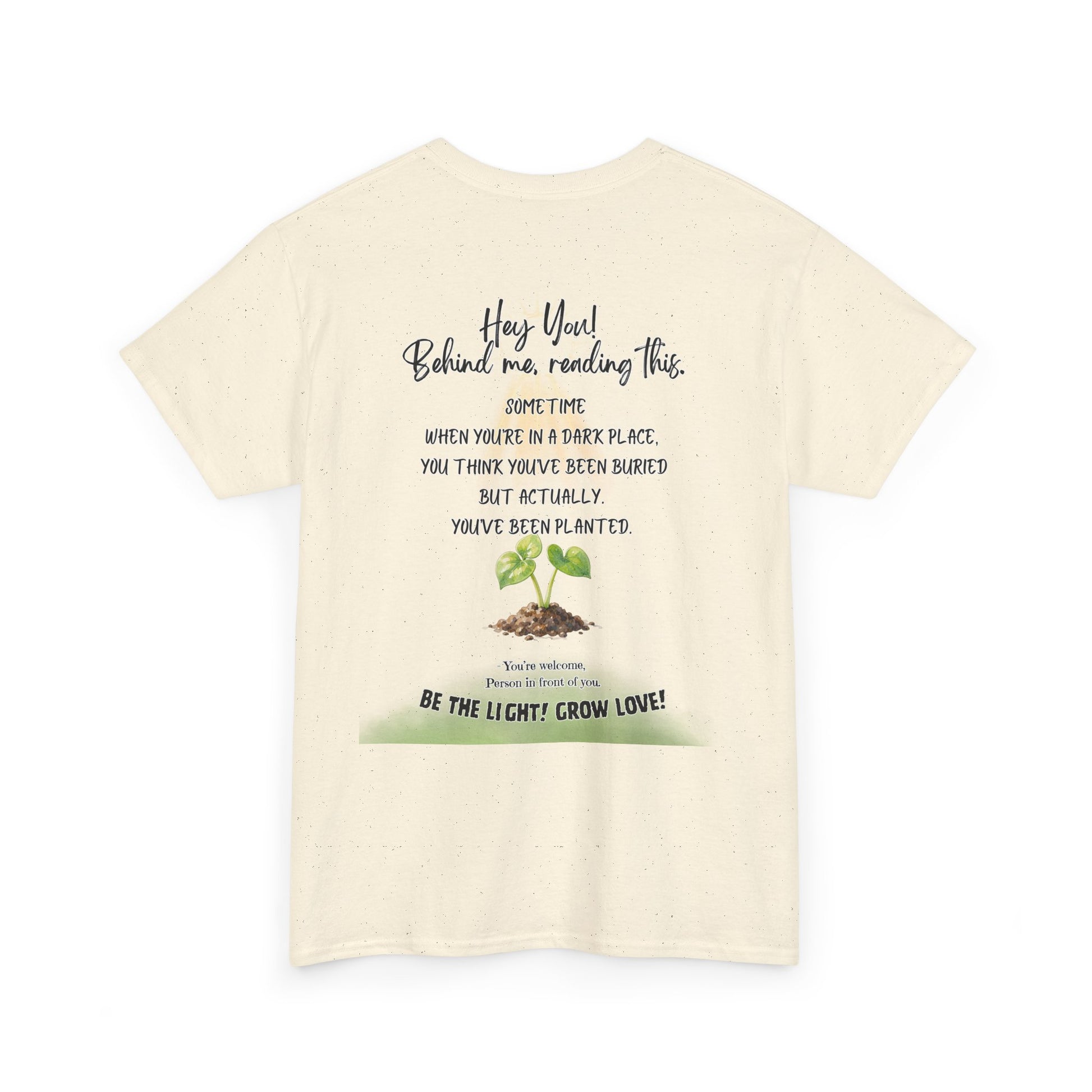 This soft, breathable tee carries a quiet message: growth after darkness. A small, hand-drawn seedling sits at the center, its gentle greens and earthy tones contrasted by thoughtful, handwritten text above and below. Wear it on slow mornings, community meet-ups, or during volunteer days to share a subtle reminder that hard times can lead to new life. The classic crew neck and relaxed fit let the design speak without shouting — comfortable enough for everyday wear, thoughtful enough to start conversations.