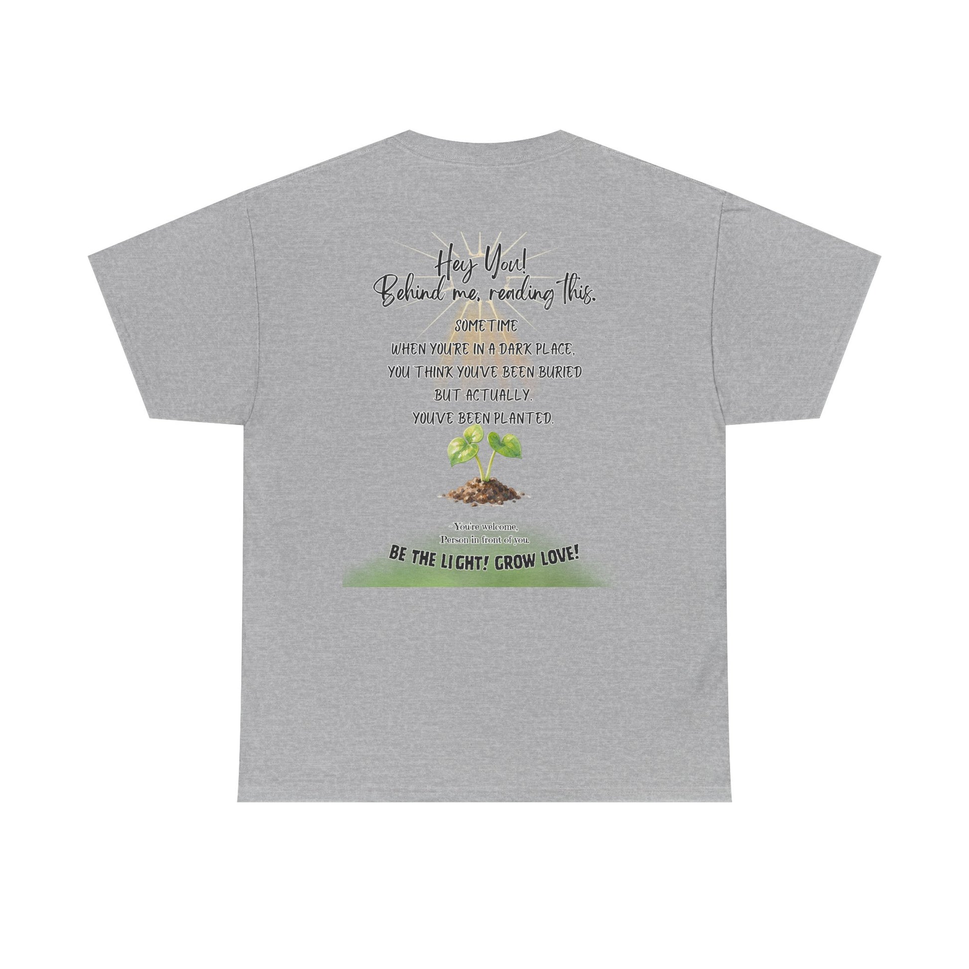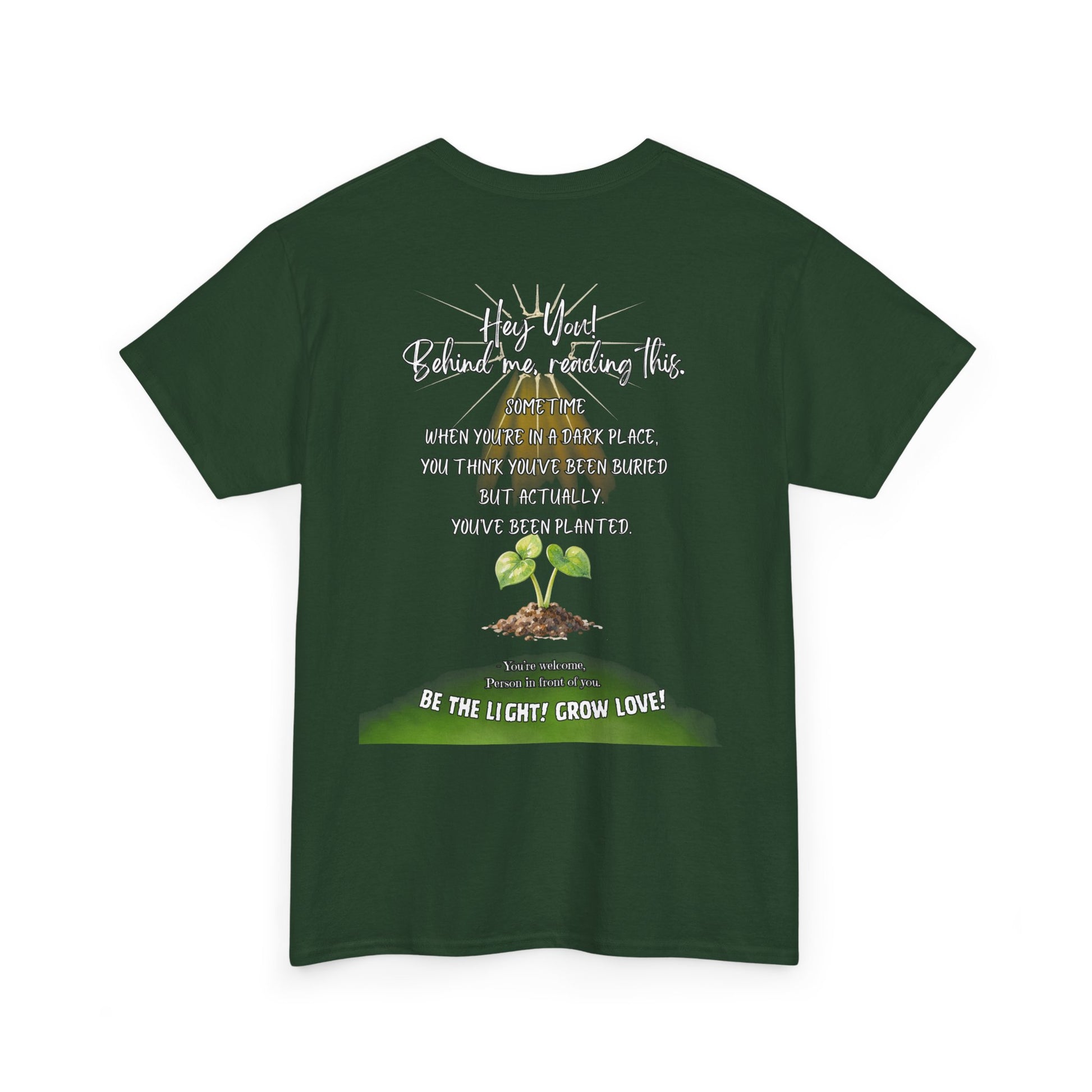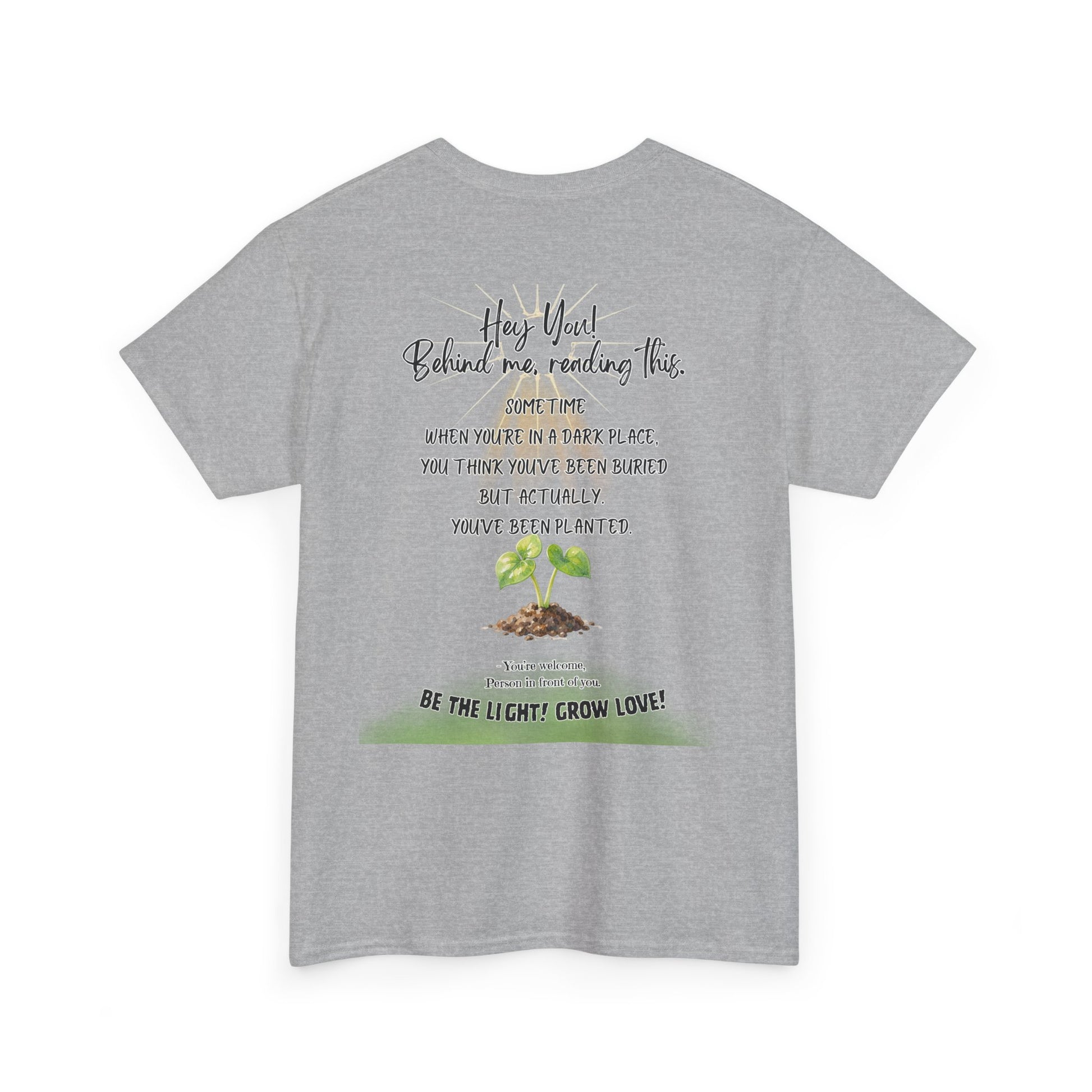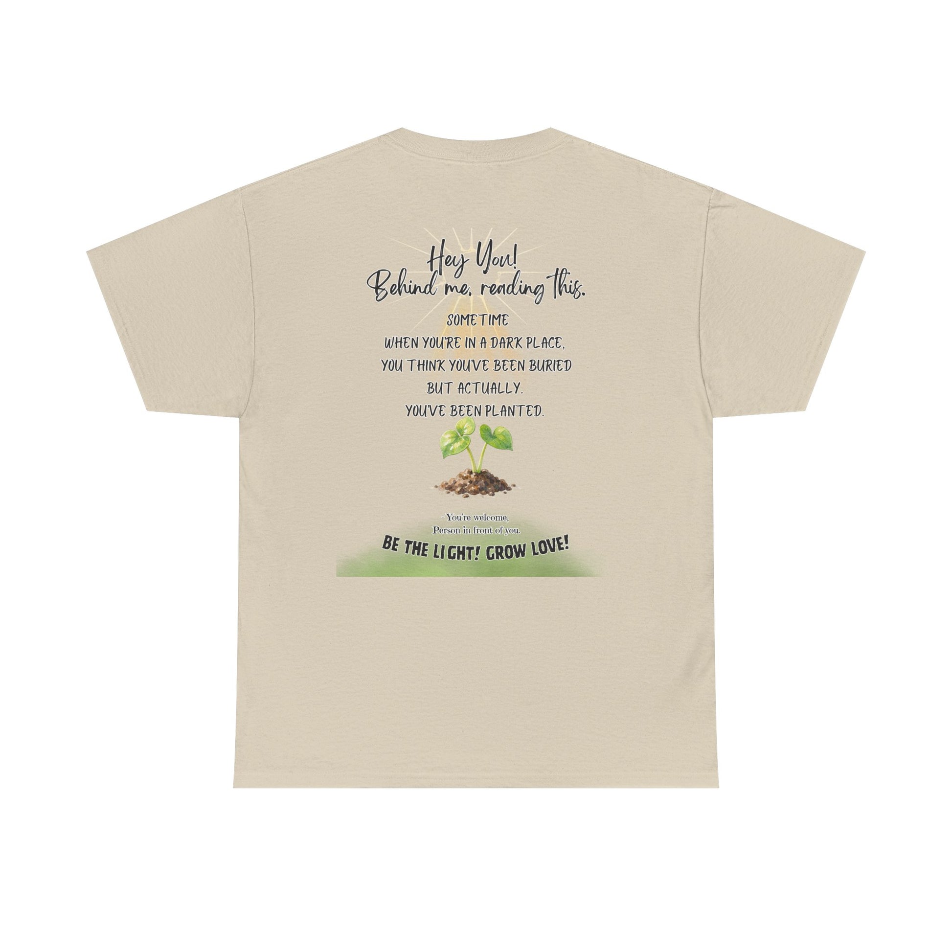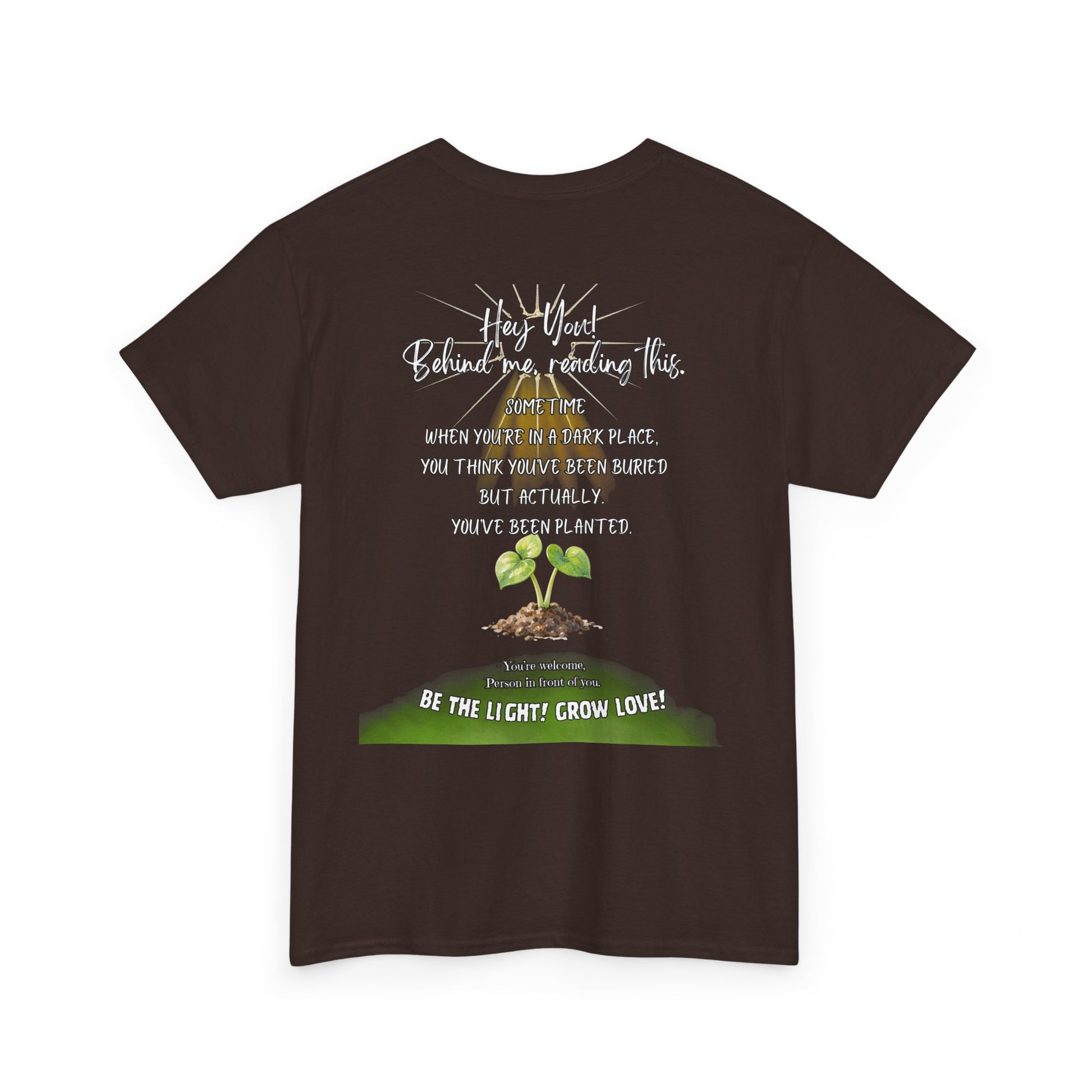 This soft, breathable tee carries a quiet message: growth after darkness. A small, hand-drawn seedling sits at the center, its gentle greens and earthy tones contrasted by thoughtful, handwritten text above and below. Wear it on slow mornings, community meet-ups, or during volunteer days to share a subtle reminder that hard times can lead to new life. The classic crew neck and relaxed fit let the design speak without shouting — comfortable enough for everyday wear, thoughtful enough to start conversations.
