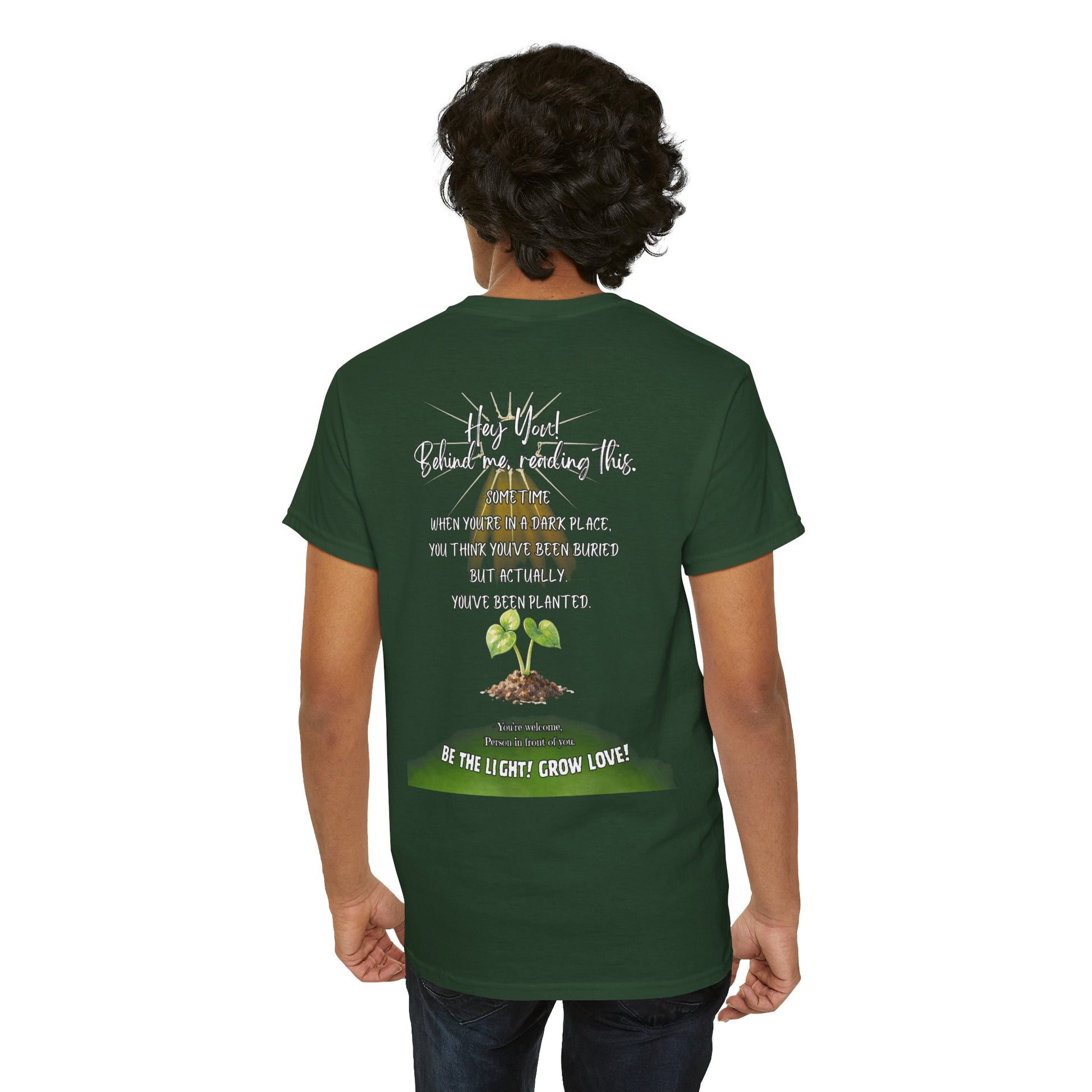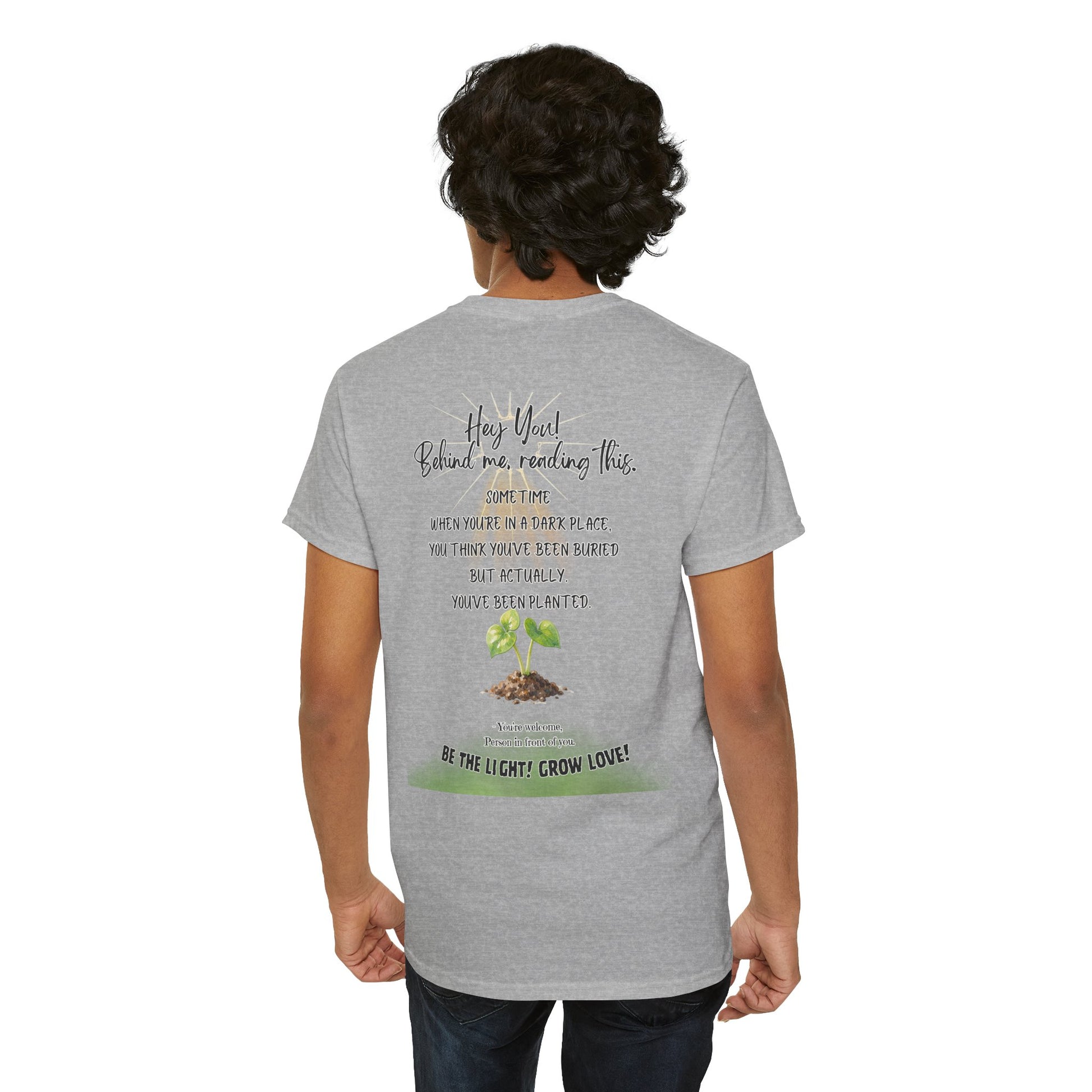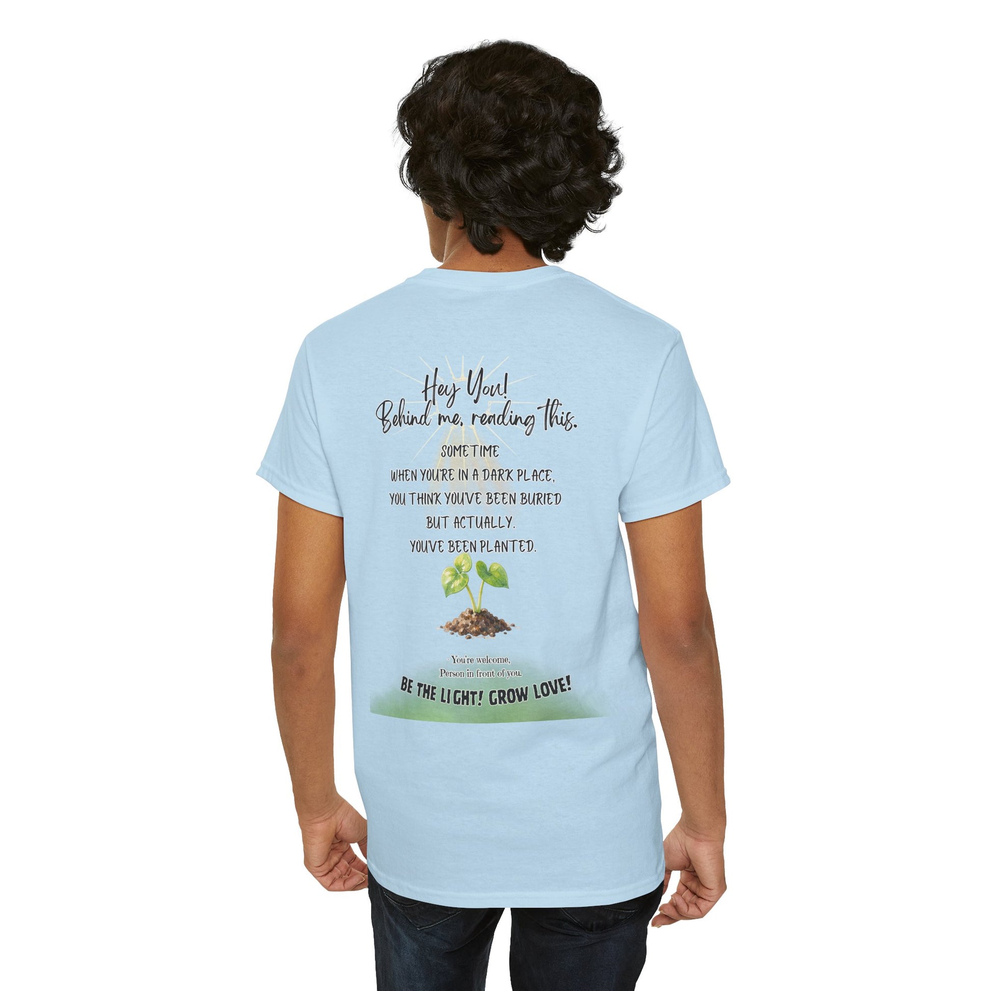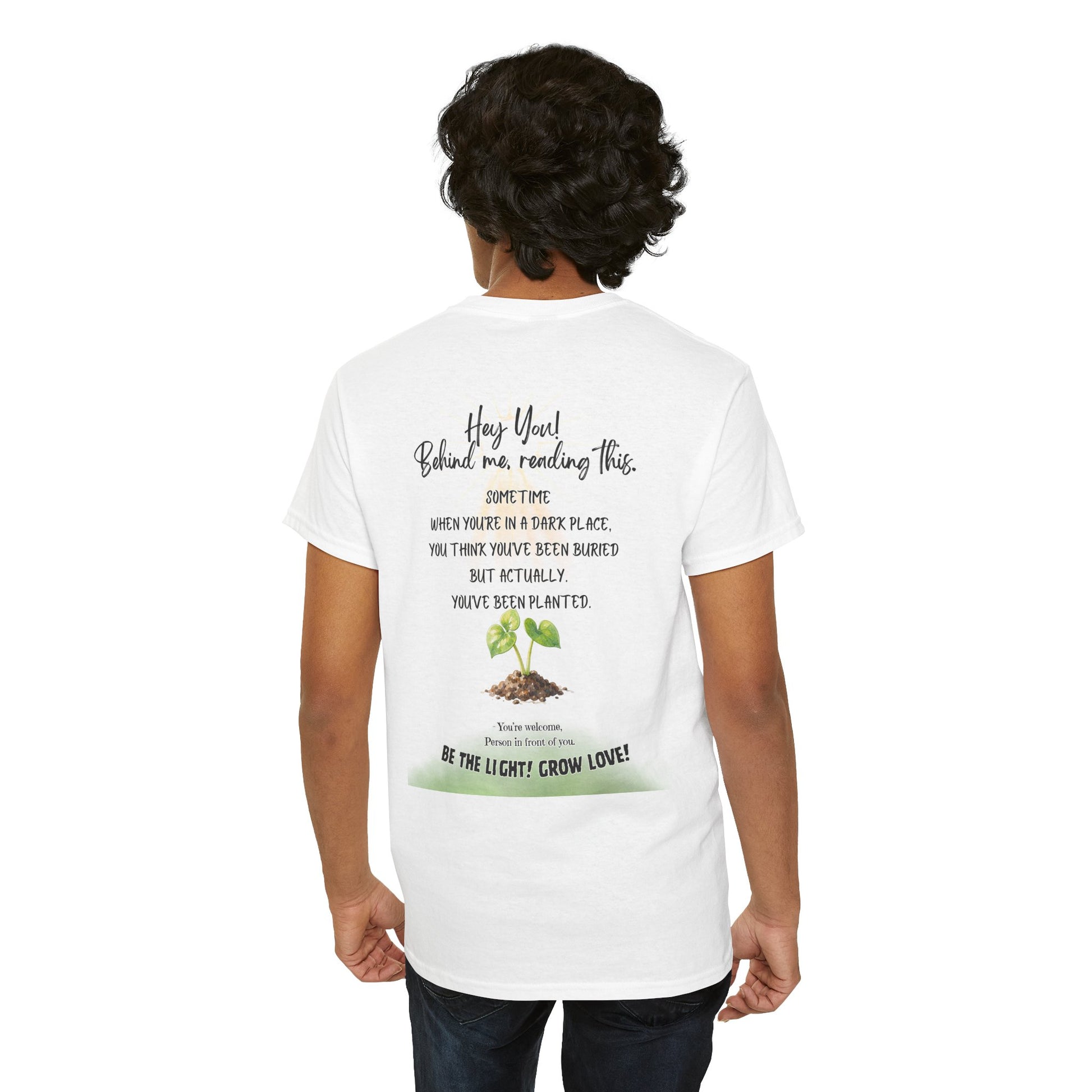 This soft, breathable tee carries a quiet message: growth after darkness. A small, hand-drawn seedling sits at the center, its gentle greens and earthy tones contrasted by thoughtful, handwritten text above and below. Wear it on slow mornings, community meet-ups, or during volunteer days to share a subtle reminder that hard times can lead to new life. The classic crew neck and relaxed fit let the design speak without shouting — comfortable enough for everyday wear, thoughtful enough to start conversations.