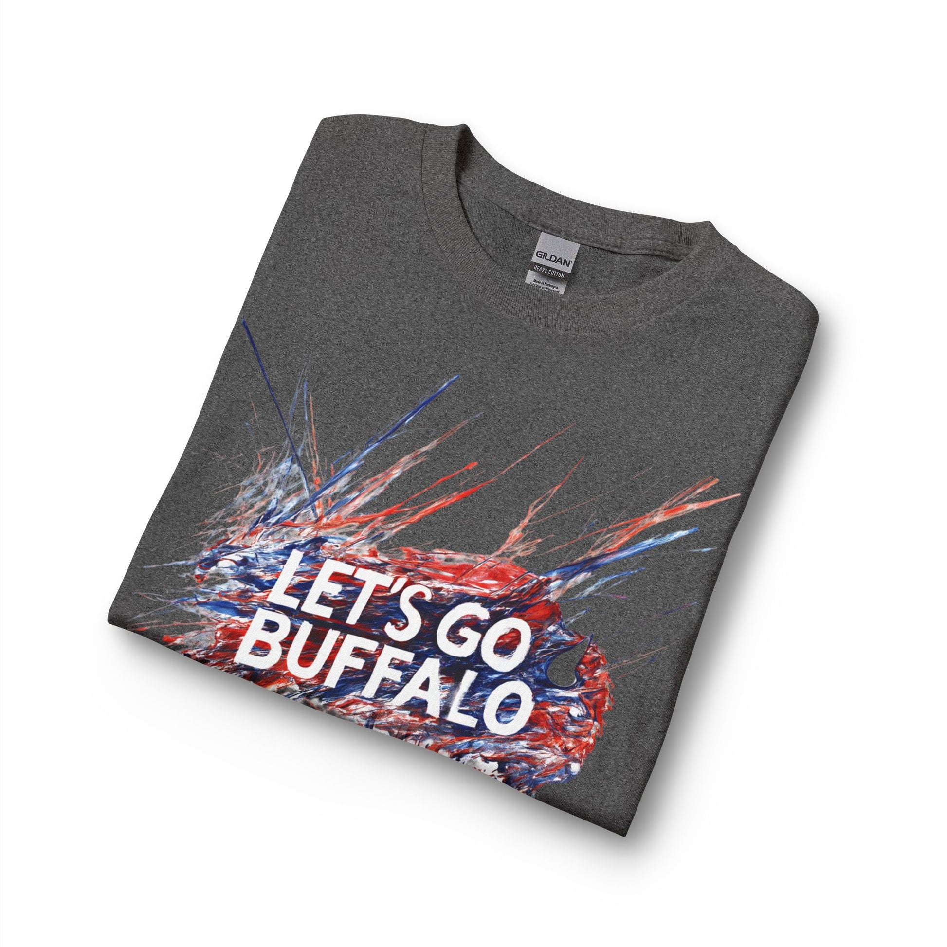 This long sleeve shirt brings stadium energy into everyday wear. Bold, painterly strokes of red and blue frame a confident “LET’S GO BUFFALO” rally, like a banner whipped by wind on game day. The 100% cotton build feels clean against skin and breathes through tailgates, walks, and weekday commutes. Wear it layered under a jean jacket for cooler nights or solo when the sun comes out — it reads like loyalty worn proudly, not shouted. It settles into familiar rhythms: cheering with friends, warming up before a local pickup, or slipping on after a long day to keep the team close.