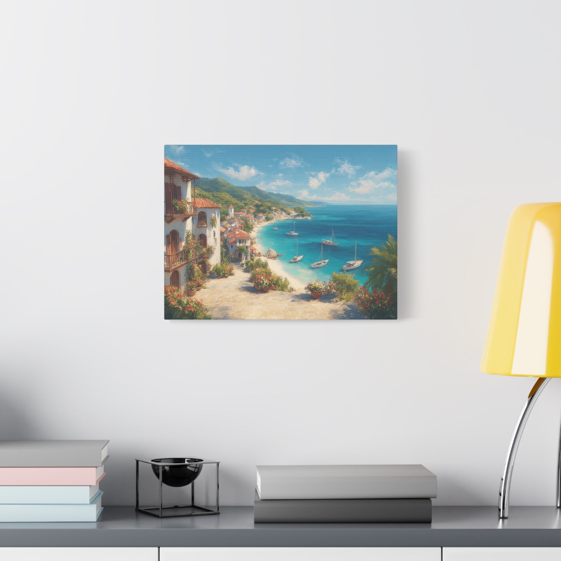 Village by the Sea -Coastal Serenity Canvas Print, Beach Decor, Wall Art for Home, Gift for Beach Lovers
